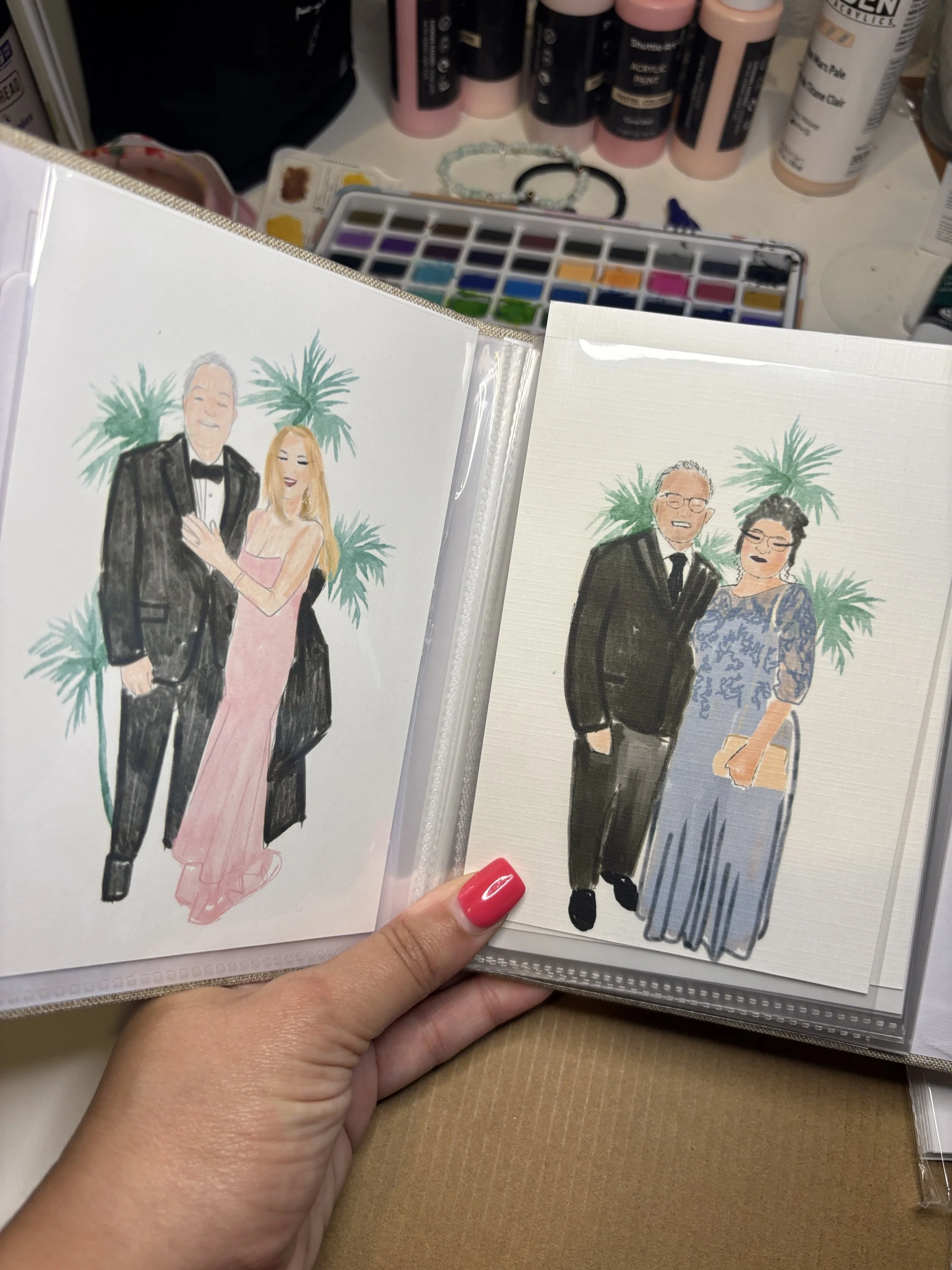 I bring an artistic edge to your big day or event while entertaining guests.For all live events in South Florida, I can create a live illustration of a key moment & quick guest portrait illustrations or a mixture of both.